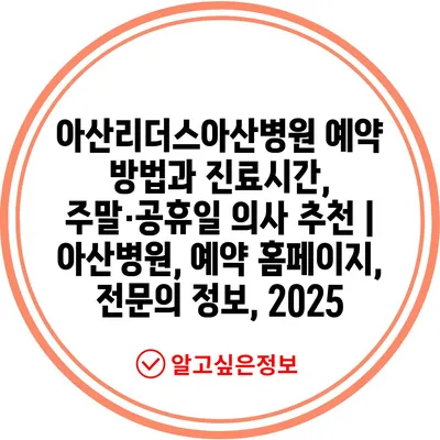 아산리더스아산병원 예약 방법과 진료시간, 주말·공휴일 의사 추천 | 아산병원, 예약 홈페이지, 전문의 정보, 2025