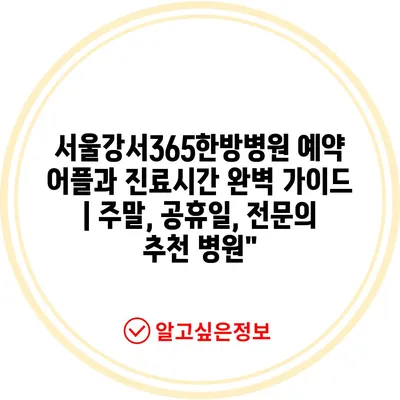 서울강서365한방병원 예약 어플과 진료시간 완벽 가이드 | 주말, 공휴일, 전문의 추천 병원”