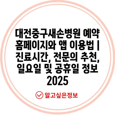 대전중구새손병원 예약 홈페이지와 앱 이용법 | 진료시간, 전문의 추천, 일요일 및 공휴일 정보 2025