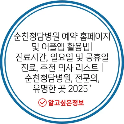 순천청담병원 예약 홈페이지 및 어플앱 활용법| 진료시간, 일요일 및 공휴일 진료, 추천 의사 리스트 | 순천청담병원, 전문의, 유명한 곳 2025″