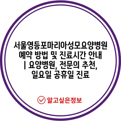 서울영등포마리아성모요양병원 예약 방법 및 진료시간 안내 | 요양병원, 전문의 추천, 일요일 공휴일 진료