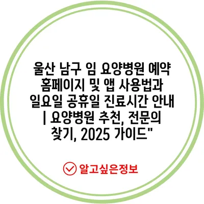 울산 남구 임 요양병원 예약 홈페이지 및 앱 사용법과 일요일 공휴일 진료시간 안내 | 요양병원 추천, 전문의 찾기, 2025 가이드”