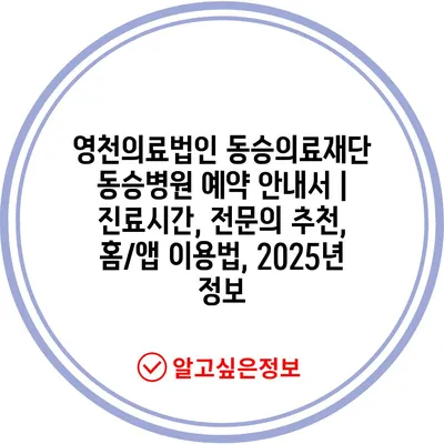 영천의료법인 동승의료재단 동승병원 예약 안내서 | 진료시간, 전문의 추천, 홈/앱 이용법, 2025년 정보
