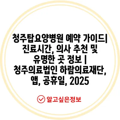 청주탑요양병원 예약 가이드| 진료시간, 의사 추천 및 유명한 곳 정보 | 청주의료법인 하람의료재단, 앱, 공휴일, 2025