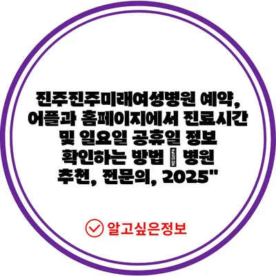 진주진주미래여성병원 예약, 어플과 홈페이지에서 진료시간 및 일요일 공휴일 정보 확인하는 방법 | 병원 추천, 전문의, 2025″