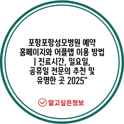 포항포항성모병원 예약 홈페이지와 어플앱 이용 방법 | 진료시간, 일요일, 공휴일 전문의 추천 및 유명한 곳 2025″