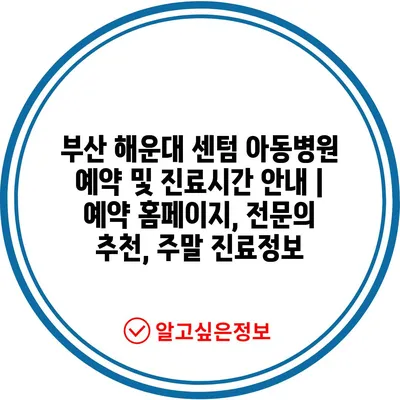 부산 해운대 센텀 아동병원 예약 및 진료시간 안내 | 예약 홈페이지, 전문의 추천, 주말 진료정보