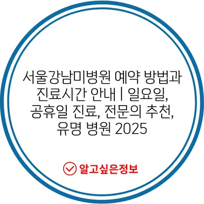 서울강남미병원 예약 방법과 진료시간 안내 | 일요일, 공휴일 진료, 전문의 추천, 유명 병원 2025