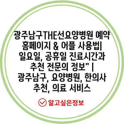 광주남구THE선요양병원 예약 홈페이지 & 어플 사용법| 일요일, 공휴일 진료시간과 추천 전문의 정보” | 광주남구, 요양병원, 한의사 추천, 의료 서비스