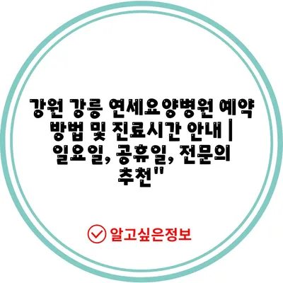 강원 강릉 연세요양병원 예약 방법 및 진료시간 안내 | 일요일, 공휴일, 전문의 추천”