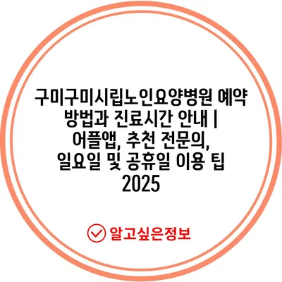 구미구미시립노인요양병원 예약 방법과 진료시간 안내 | 어플앱, 추천 전문의, 일요일 및 공휴일 이용 팁 2025