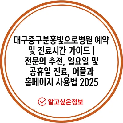 대구중구분홍빛으로병원 예약 및 진료시간 가이드 | 전문의 추천, 일요일 및 공휴일 진료, 어플과 홈페이지 사용법 2025