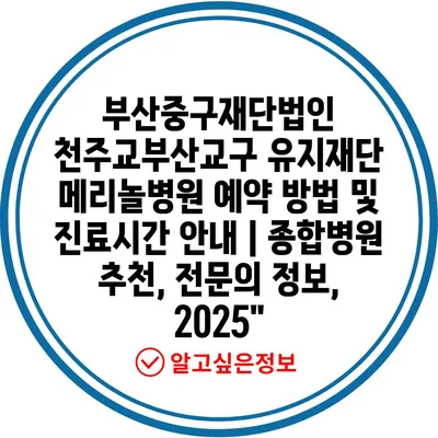 부산중구재단법인 천주교부산교구 유지재단 메리놀병원 예약 방법 및 진료시간 안내 | 종합병원 추천, 전문의 정보, 2025″