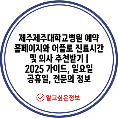 제주제주대학교병원 예약 홈페이지와 어플로 진료시간 및 의사 추천받기 | 2025 가이드, 일요일 공휴일, 전문의 정보