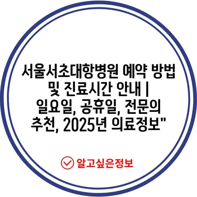 서울서초대항병원 예약 방법 및 진료시간 안내 | 일요일, 공휴일, 전문의 추천, 2025년 의료정보”