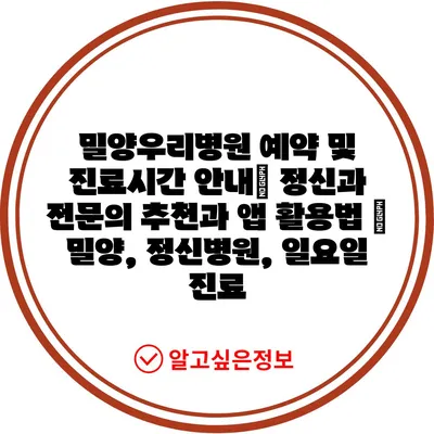 밀양우리병원 예약 및 진료시간 안내| 정신과 전문의 추천과 앱 활용법 | 밀양, 정신병원, 일요일 진료