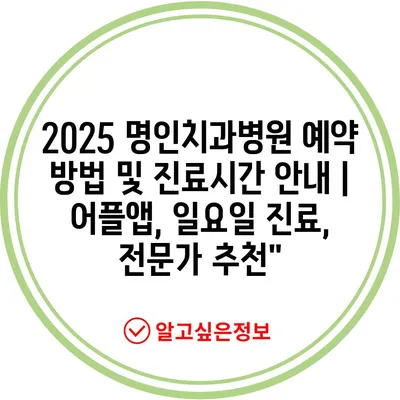 2025 명인치과병원 예약 방법 및 진료시간 안내 | 어플앱, 일요일 진료, 전문가 추천”