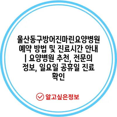 울산동구방어진마린요양병원 예약 방법 및 진료시간 안내 | 요양병원 추천, 전문의 정보, 일요일 공휴일 진료 확인