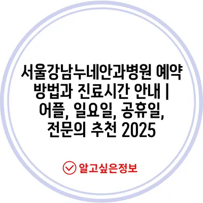 서울강남누네안과병원 예약 방법과 진료시간 안내 | 어플, 일요일, 공휴일, 전문의 추천 2025