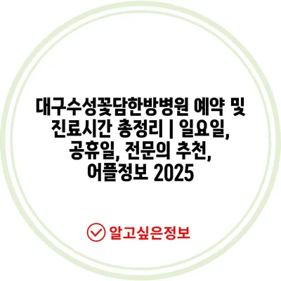 대구수성꽃담한방병원 예약 및 진료시간 총정리 | 일요일, 공휴일, 전문의 추천, 어플정보 2025