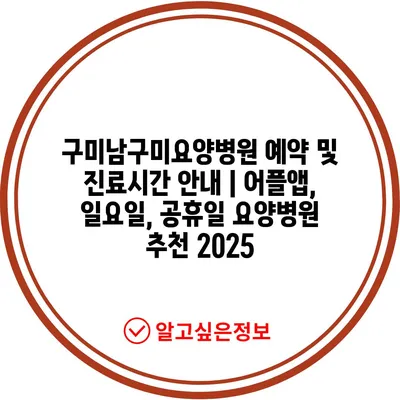 구미남구미요양병원 예약 및 진료시간 안내 | 어플앱, 일요일, 공휴일 요양병원 추천 2025