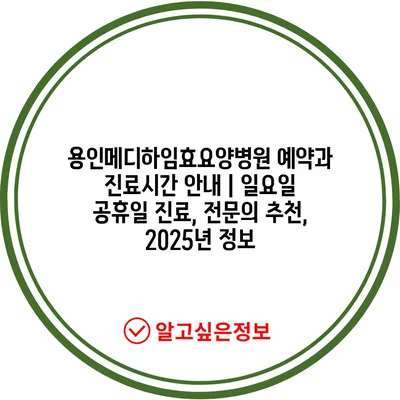 용인메디하임효요양병원 예약과 진료시간 안내 | 일요일 공휴일 진료, 전문의 추천, 2025년 정보