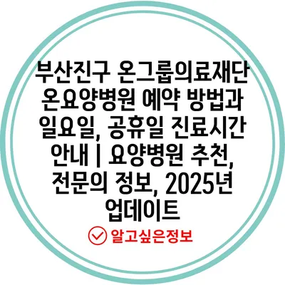 부산진구 온그룹의료재단 온요양병원 예약 방법과 일요일, 공휴일 진료시간 안내 | 요양병원 추천, 전문의 정보, 2025년 업데이트