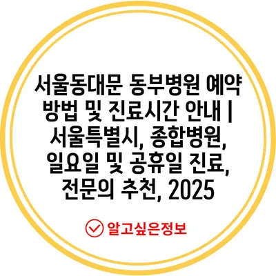 서울동대문 동부병원 예약 방법 및 진료시간 안내 | 서울특별시, 종합병원, 일요일 및 공휴일 진료, 전문의 추천, 2025