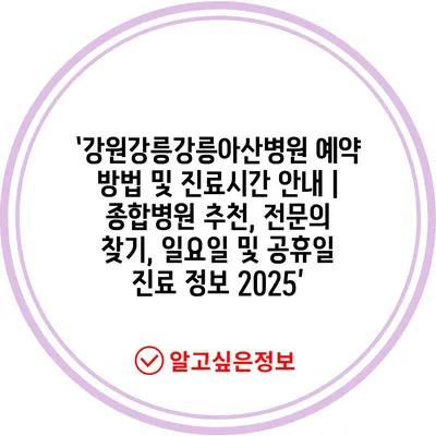 ‘강원강릉강릉아산병원 예약 방법 및 진료시간 안내 | 종합병원 추천, 전문의 찾기, 일요일 및 공휴일 진료 정보 2025’