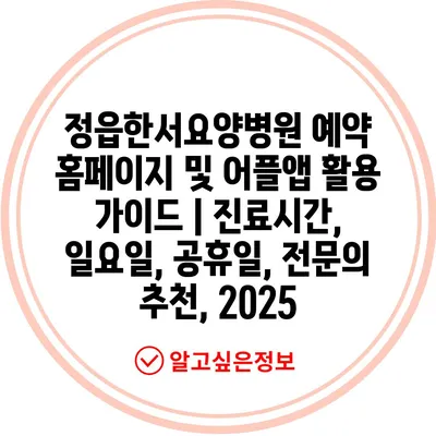 정읍한서요양병원 예약 홈페이지 및 어플앱 활용 가이드 | 진료시간, 일요일, 공휴일, 전문의 추천, 2025