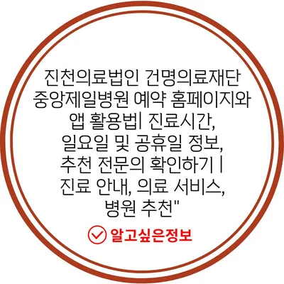 진천의료법인 건명의료재단 중앙제일병원 예약 홈페이지와 앱 활용법| 진료시간, 일요일 및 공휴일 정보, 추천 전문의 확인하기 | 진료 안내, 의료 서비스, 병원 추천”