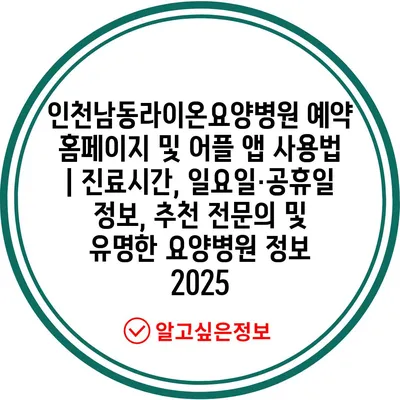 인천남동라이온요양병원 예약 홈페이지 및 어플 앱 사용법 | 진료시간, 일요일·공휴일 정보, 추천 전문의 및 유명한 요양병원 정보 2025