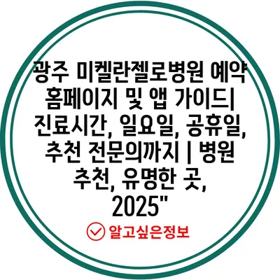 광주 미켈란젤로병원 예약 홈페이지 및 앱 가이드| 진료시간, 일요일, 공휴일, 추천 전문의까지 | 병원 추천, 유명한 곳, 2025″