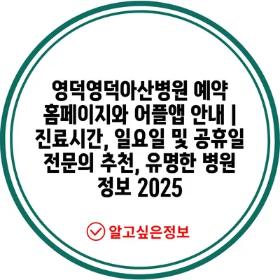 영덕영덕아산병원 예약 홈페이지와 어플앱 안내 | 진료시간, 일요일 및 공휴일 전문의 추천, 유명한 병원 정보 2025