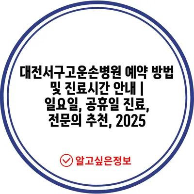 대전서구고운손병원 예약 방법 및 진료시간 안내 | 일요일, 공휴일 진료, 전문의 추천, 2025