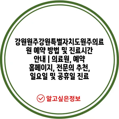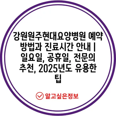 강원원주현대요양병원 예약 방법과 진료시간 안내 | 일요일, 공휴일, 전문의 추천, 2025년도 유용한 팁