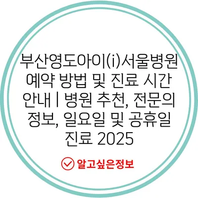 부산영도아이(i)서울병원 예약 방법 및 진료 시간 안내 | 병원 추천, 전문의 정보, 일요일 및 공휴일 진료 2025