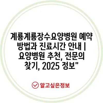 계룡계룡장수요양병원 예약 방법과 진료시간 안내 | 요양병원 추천, 전문의 찾기, 2025 정보”