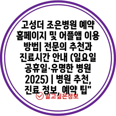 고성더 조은병원 예약 홈페이지 및 어플앱 이용 방법| 전문의 추천과 진료시간 안내 (일요일 공휴일·유명한 병원 2025) | 병원 추천, 진료 정보, 예약 팁”