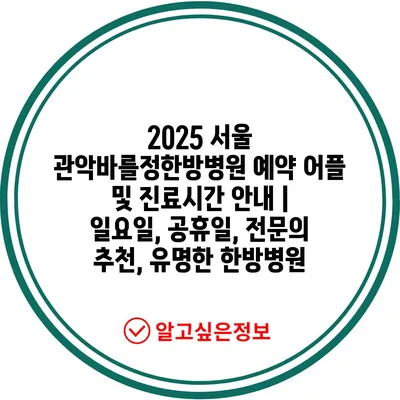 2025 서울 관악바를정한방병원 예약 어플 및 진료시간 안내 | 일요일, 공휴일, 전문의 추천, 유명한 한방병원