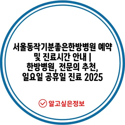 서울동작기분좋은한방병원 예약 및 진료시간 안내 | 한방병원, 전문의 추천, 일요일 공휴일 진료 2025
