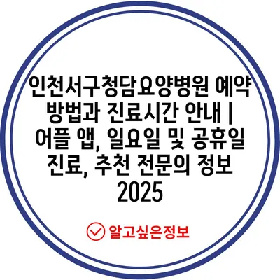 인천서구청담요양병원 예약 방법과 진료시간 안내 | 어플 앱, 일요일 및 공휴일 진료, 추천 전문의 정보 2025