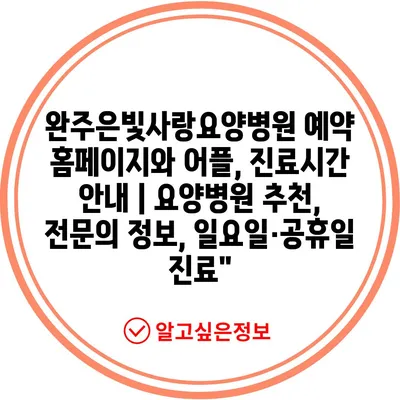 완주은빛사랑요양병원 예약 홈페이지와 어플, 진료시간 안내 | 요양병원 추천, 전문의 정보, 일요일·공휴일 진료”