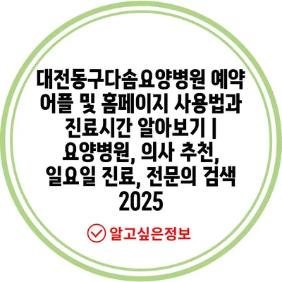 대전동구다솜요양병원 예약 어플 및 홈페이지 사용법과 진료시간 알아보기 | 요양병원, 의사 추천, 일요일 진료, 전문의 검색 2025