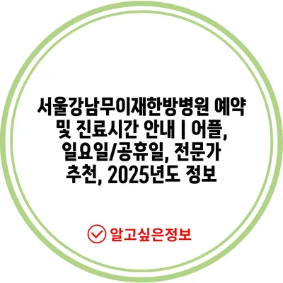 서울강남무이재한방병원 예약 및 진료시간 안내 | 어플, 일요일/공휴일, 전문가 추천, 2025년도 정보