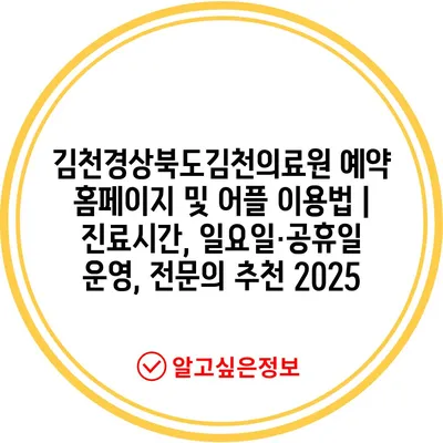 김천경상북도김천의료원 예약 홈페이지 및 어플 이용법 | 진료시간, 일요일·공휴일 운영, 전문의 추천 2025