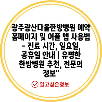 광주광산다올한방병원 예약 홈페이지 및 어플 앱 사용법 – 진료 시간, 일요일, 공휴일 안내 | 유명한 한방병원 추천, 전문의 정보”
