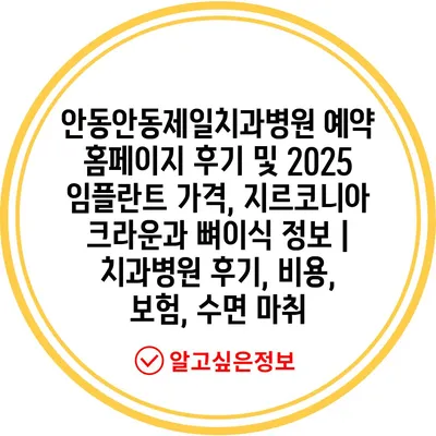 안동안동제일치과병원 예약 홈페이지 후기 및 2025 임플란트 가격, 지르코니아 크라운과 뼈이식 정보 | 치과병원 후기, 비용, 보험, 수면 마취