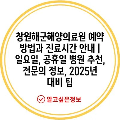 창원해군해양의료원 예약 방법과 진료시간 안내 | 일요일, 공휴일 병원 추천, 전문의 정보, 2025년 대비 팁