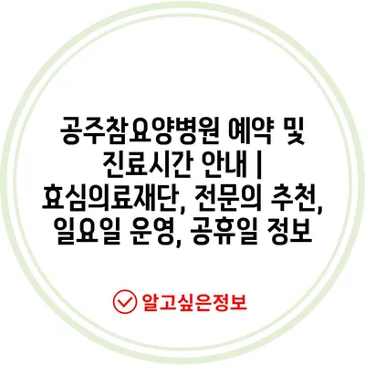 공주참요양병원 예약 및 진료시간 안내 | 효심의료재단, 전문의 추천, 일요일 운영, 공휴일 정보